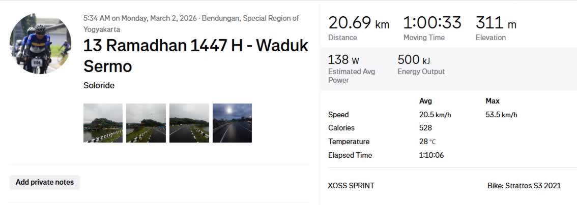 24 Ramadhan 1447 H | Solo Ride Gowes Embun Pagi – Menuju Waduk Sermo (13/03/2026)