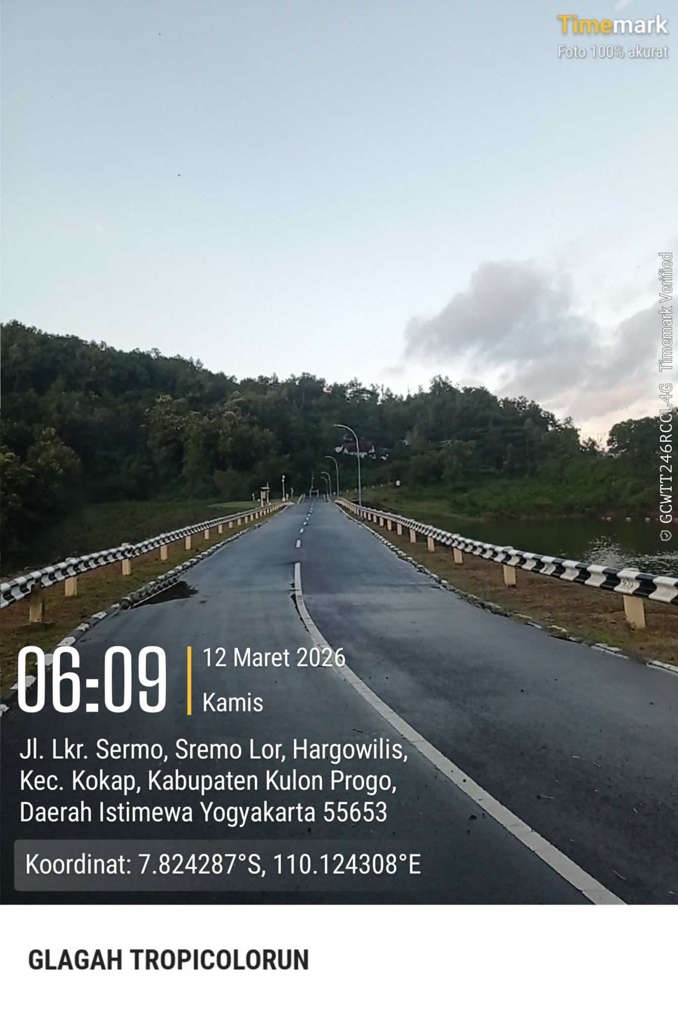 Kamis pagi, 12 Maret 2026, gowes santai tapi tetap berasa dimulai pukul 05.34 WIB dari Rumah Wates. Seperti rutinitas, diawali dulu dengan presensi pagi di SMKN 1 Pengasih, lalu lanjut mengayuh ke rute favorit: Pengasih – Bulu – Gemulung – Waduk Sermo.