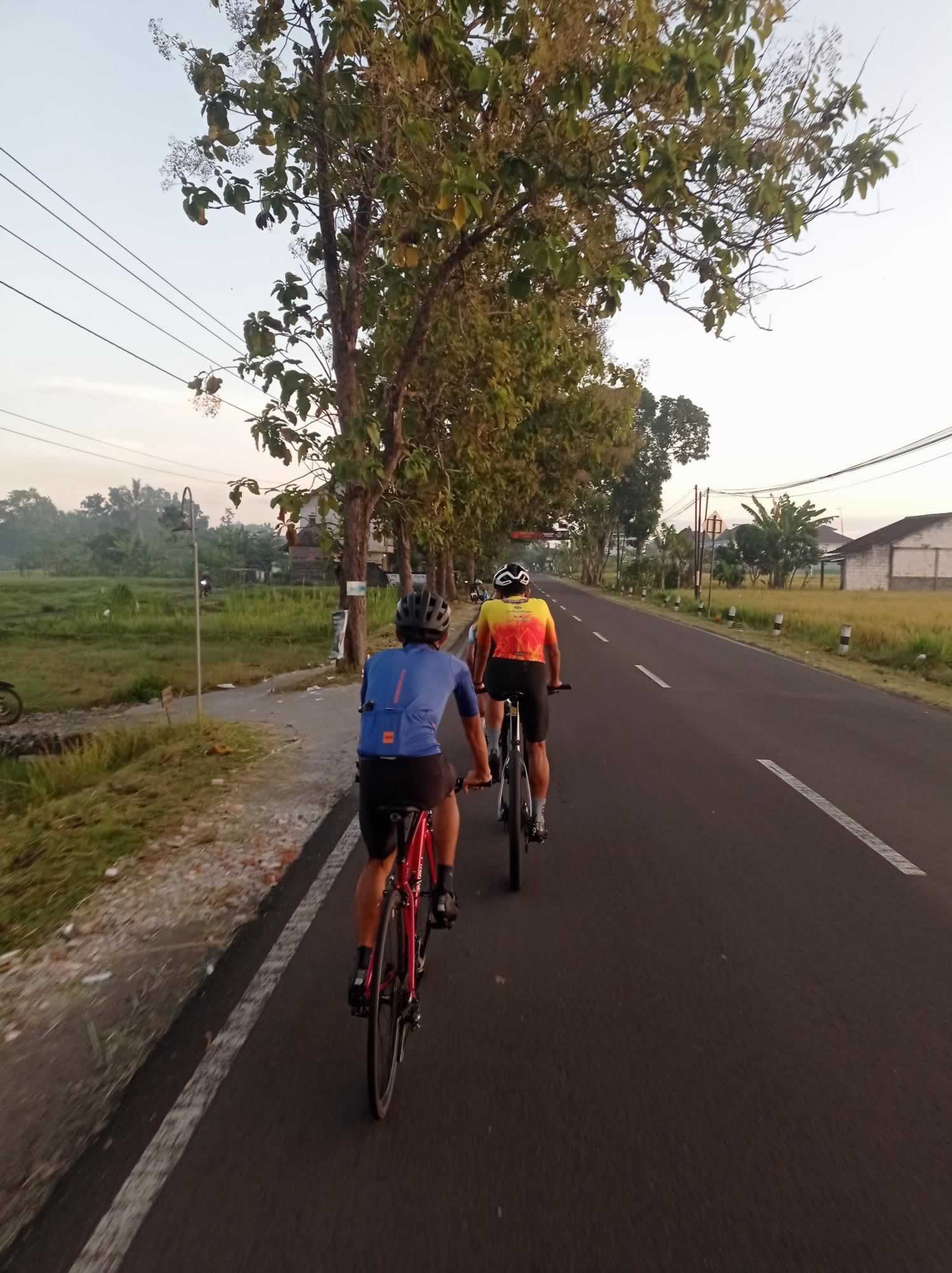 Sejak awal, kayuhan sudah terasa enak. Jalanan masih lengang, udara pagi sejuk, dan obrolan ringan jadi teman sepanjang perjalanan. Masuk area Nanggulan dan Kalibawang, kontur mulai naik turun, bikin kaki sedikit kerja ekstra tapi tetap terkontrol.