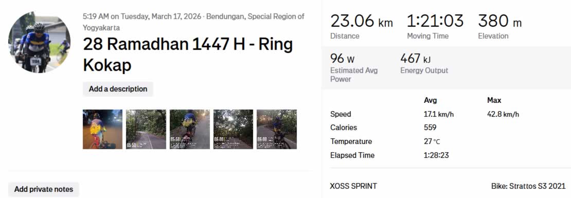 Meski sedang menjalankan ibadah puasa, performa di atas Strattos S3 2021 tetap stabil. Berikut ringkasan teknis dari perangkat XOSS SPRINT:
