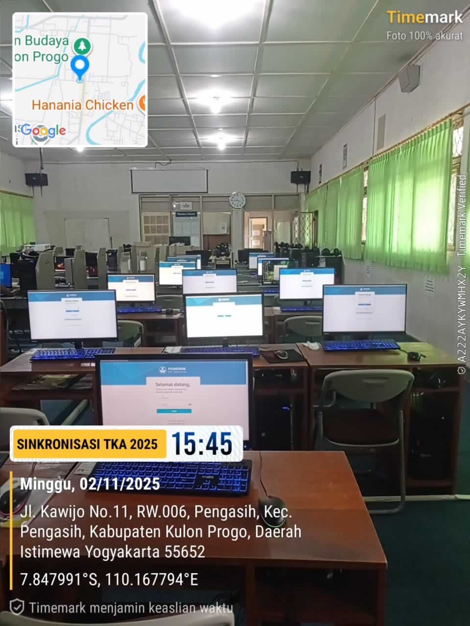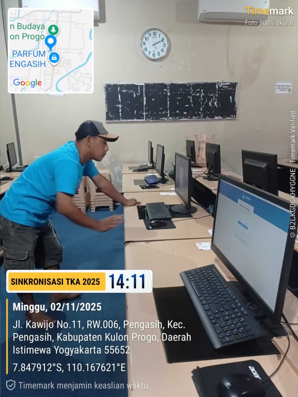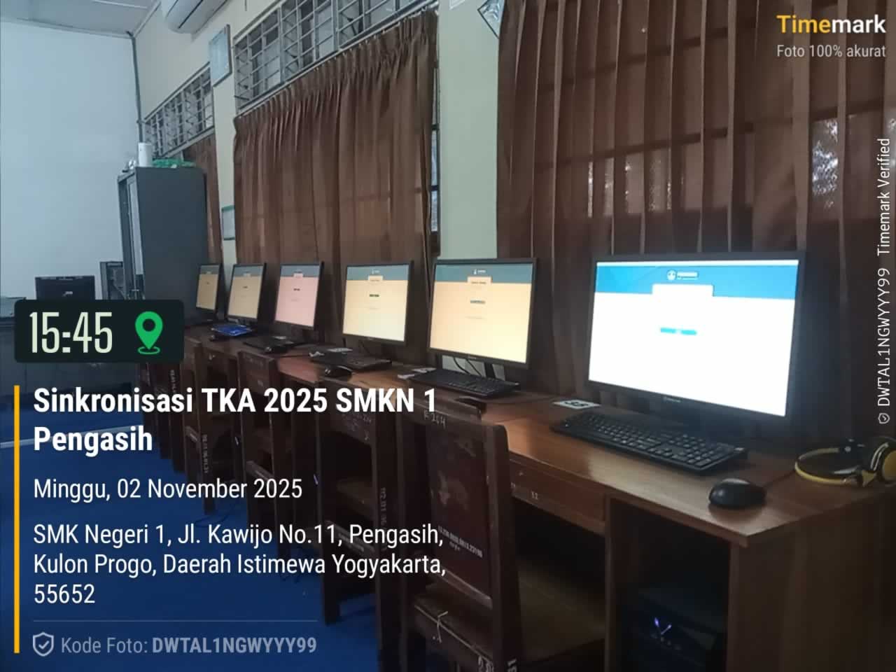 SMK Negeri 1 Pengasih melaksanakan kegiatan Sinkronisasi Tes Kompetensi Akademik (TKA) 2025 Utama pada Minggu, 2 November 2025 bertempat di ruang laboratorium komputer sekolah. Kegiatan ini dimulai pukul 13.00 WIB hingga selesai dengan tujuan memastikan kesiapan server, jaringan, serta perangkat klien untuk pelaksanaan TKA 2025.