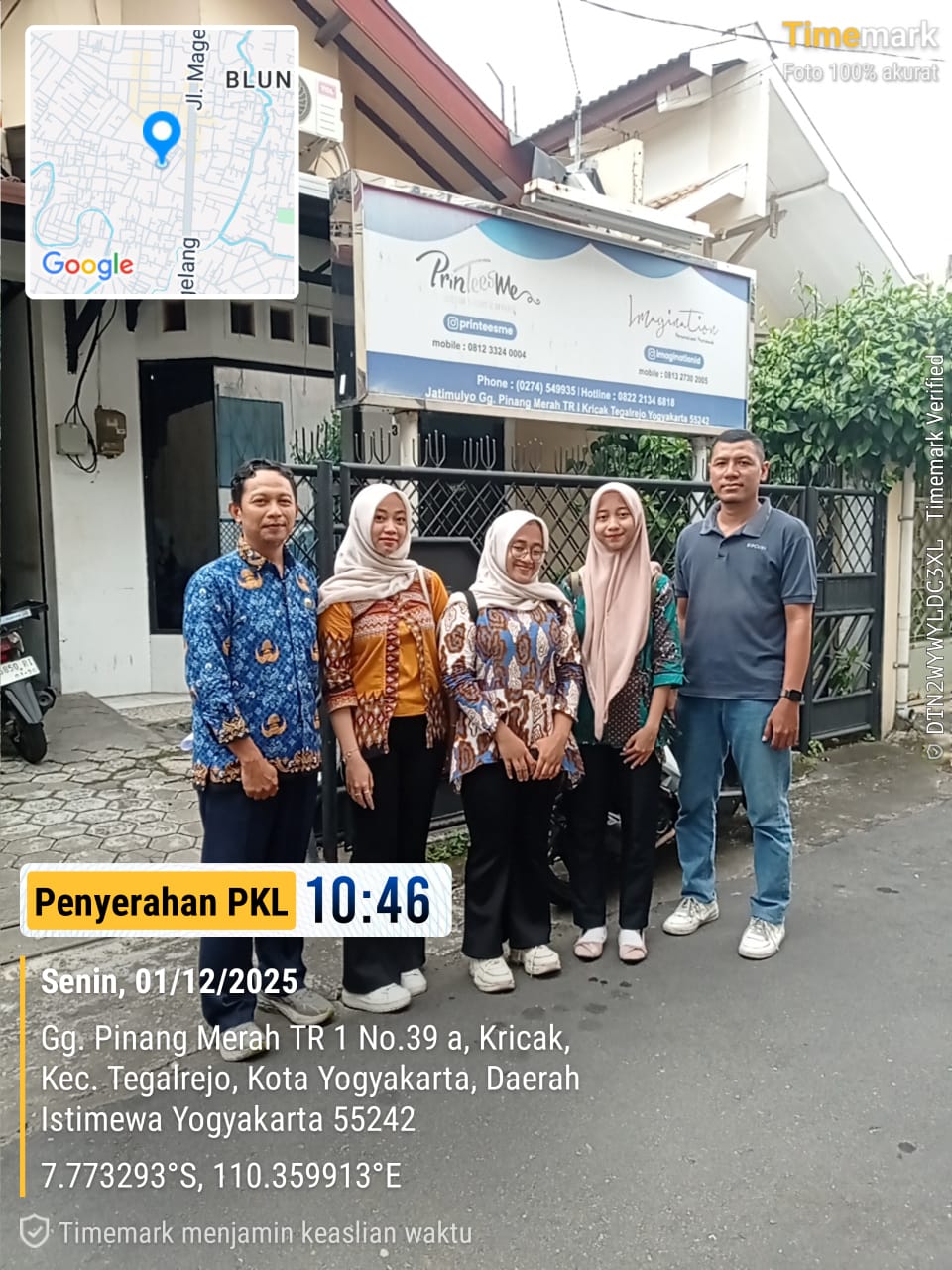 Pada hari Senin, 1 Desember 2025 pukul 10.00 WIB – selesai, telah dilaksanakan kegiatan Penyerahan Siswa Praktik Kerja Lapangan (PKL) dari SMK negeri 1 Pengasih ke Imagination Photobook, yang beralamat di Jatimulyo, Kricak, Tegalrejo, Yogyakarta. Penerimaan dilakukan langsung oleh Owner Imagination Photobook, Bapak Achmad Subchan. Kegiatan berlangsung dengan lancar dalam suasana penuh kehangatan serta semangat kolaborasi.