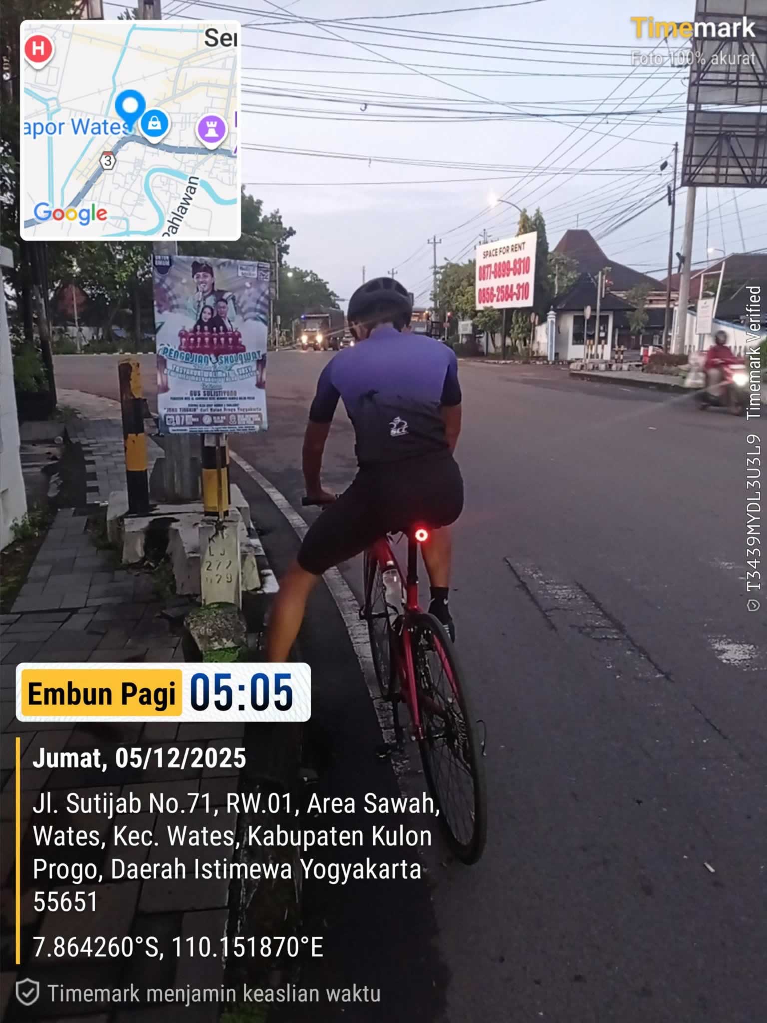 Start 05.05 WIB – Tikum Terminal Wates → Tambak → Jl. Nasional Toyan → Deandeles Congot → Jatimalang → Putar Balik → Rumah