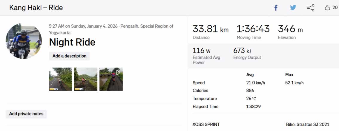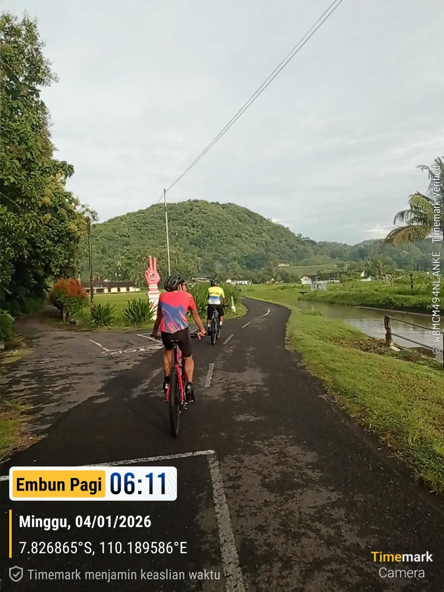 Komunitas Gowes Kelas Embun Pagi kembali menggelar kegiatan gowes rutin pada Minggu, 4 Januari 2026, bersama mas Tigor Narotama, Lik Bo, dan Pak Bambang Kris. Kegiatan dimulai sejak pagi hari dengan start pukul 05.27 WIB dari titik kumpul Gedung Budaya Kulon Progo, Pengasih.