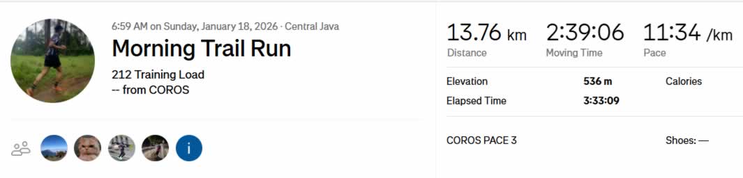 Berdasarkan catatan aplikasi COROS, diperoleh data aktivitas sebagai berikut:
