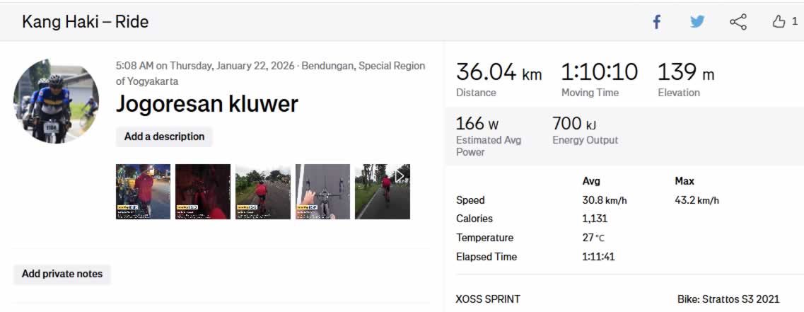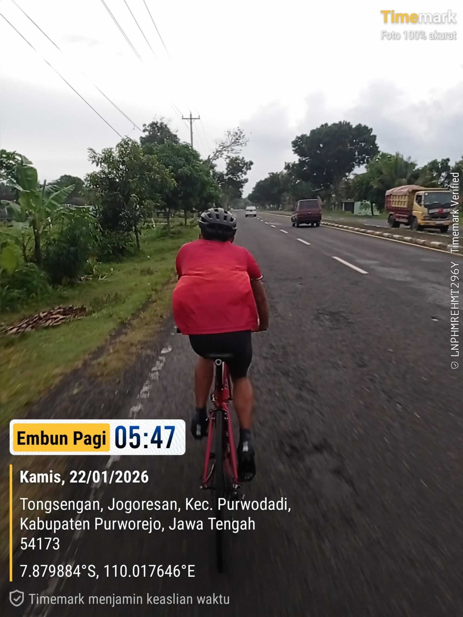 Komunitas Embun Pagi kembali melaksanakan kegiatan rutin bersepeda pagi pada Kamis, 22 Januari 2026. Gowes kali ini mengusung rute “Jogoresan Kluwer”, dengan Mas Tigor Narotama sebagai tukang tarik dan diikuti oleh Mas Farid Nurhuda.