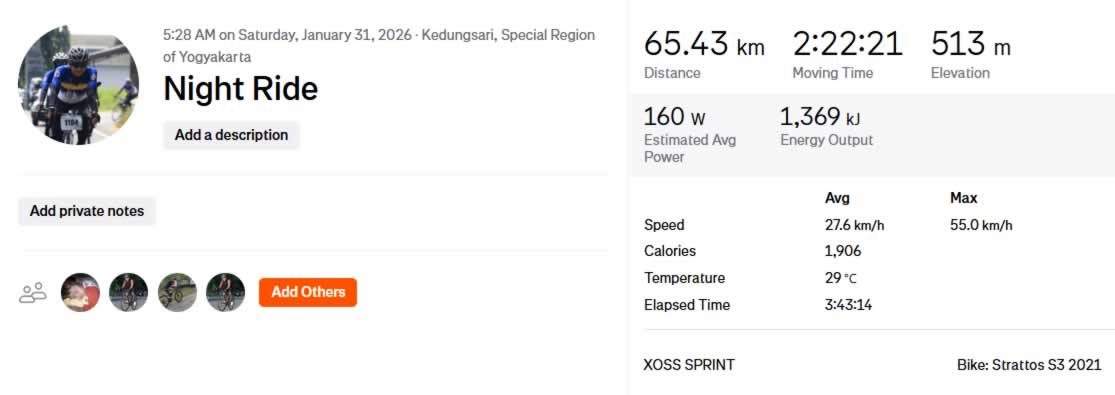 Komunitas Roadbike Kulon Progo (RBKP) kembali menggelar kegiatan gowes jarak menengah pada Sabtu, 31 Januari 2026. Gowes kali ini dikemas dalam konsep Night Ride pagi hari, dengan RC Mas Tigor Narotama sebagai penarik utama.
