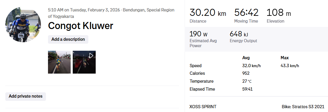 Cerita Gowes Kelas Embun Pagi – Congot Kluwer (03/02/2026)