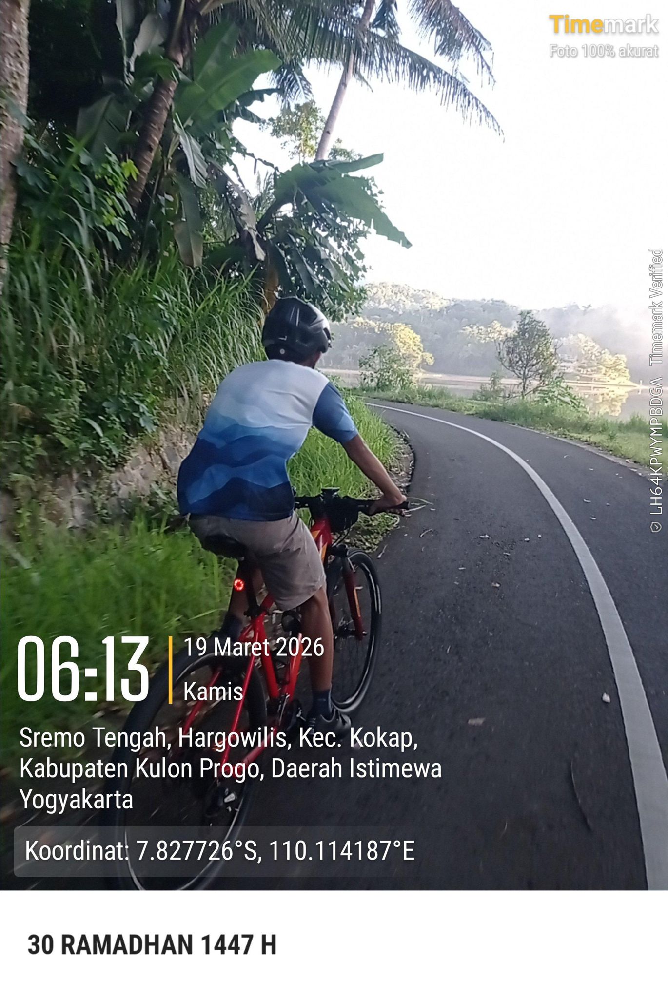 WATES, KULON PROGO - 19 Maret 2026 - Di penghujung bulan Ramadhan yang penuh berkah, tepatnya pada hari Kamis, 30 Ramadhan 1447 H, semangat untuk menjaga kesehatan dan kebugaran tetap membara. Pagi hari yang cerah menjadi saksi petualangan solo ride yang inspiratif, "Gowes Embun Pagi" menuju Waduk Sermo, destinasi ikonik di Kulon Progo.
